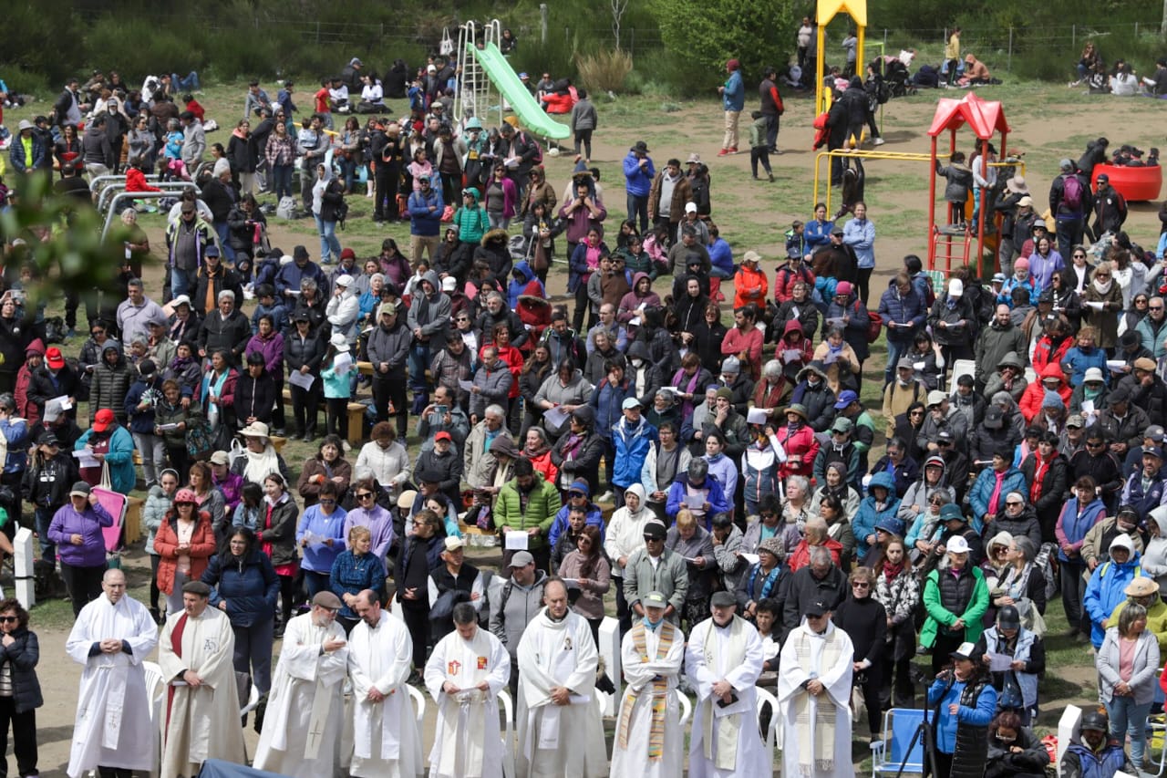 Desde temprana hora, las calles de Bariloche se vistieron de color y esperanza. Tres columnas de peregrinos, cada una con un punto de partida diferente, se dirigieron hacia la Gruta de la Virgen, donde se celebró la misa central. Familias enteras, grupos de amigos y fieles solitarios caminaron kilómetros, desafiando las inclemencias del tiempo, para cumplir sus promesas y agradecer los favores recibidos.